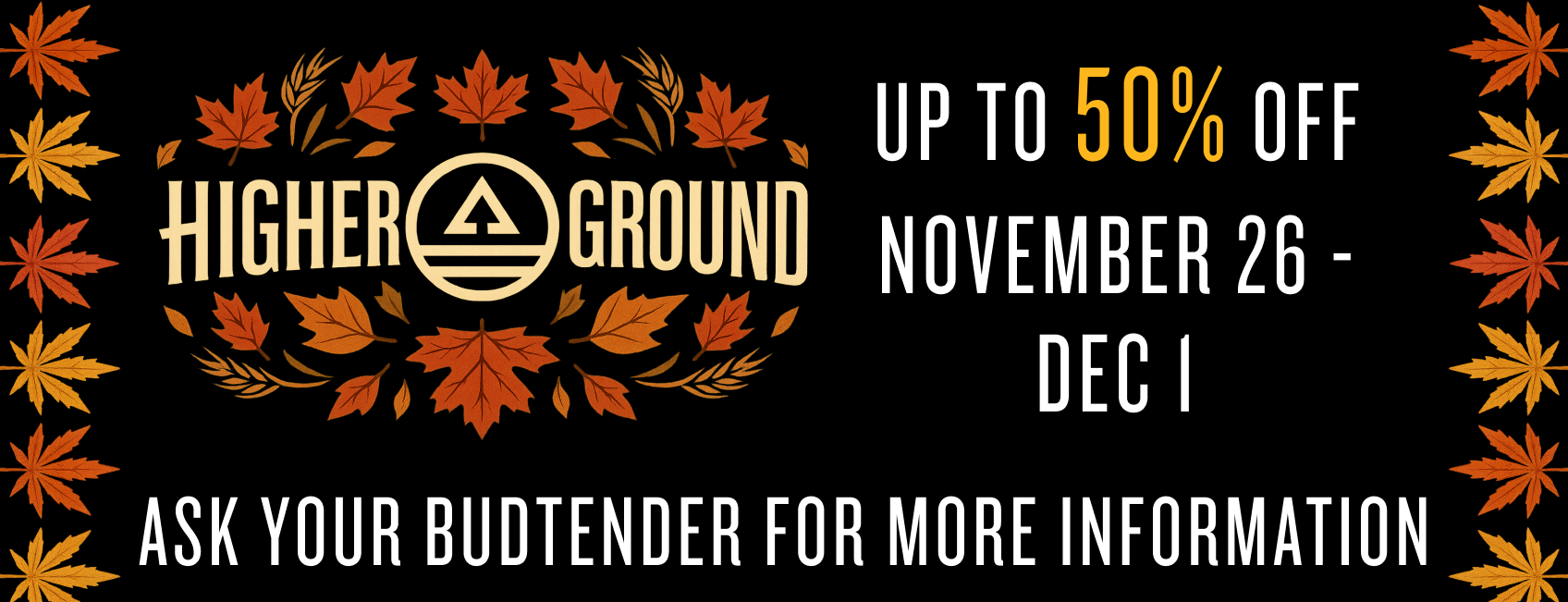 At Higher Ground, we’re dedicated to guiding you through the world of cannabis with honesty, respect, and a friendly smile. Our centrally located dispensaries make it easy to find the quality products you deserve, at prices you will appreciate.