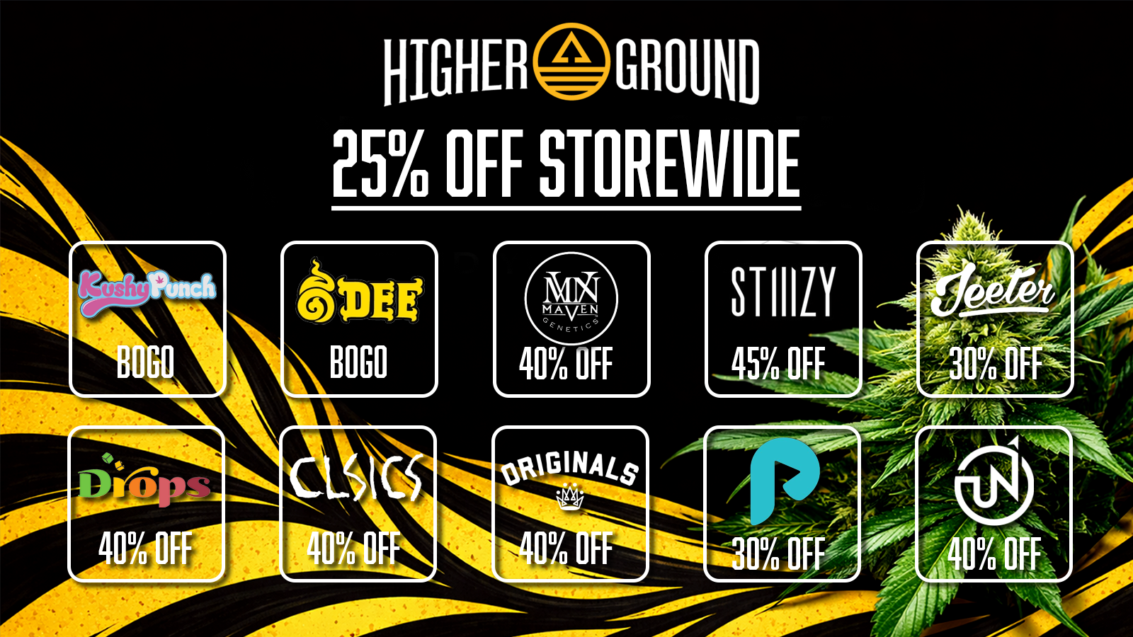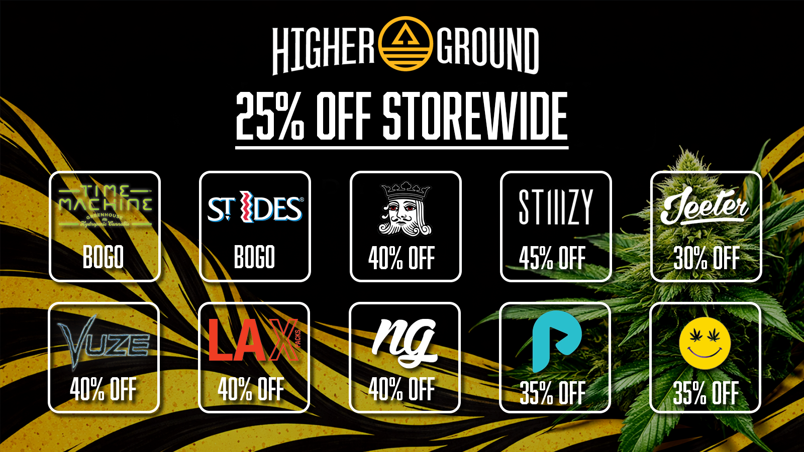 Unlock the best cannabis deals in San Bernardino at Higher Ground! Our curated selection of cannabis products feature top-quality products at unbeatable prices. From flower to accessories, find everything you need for an elevated experience.